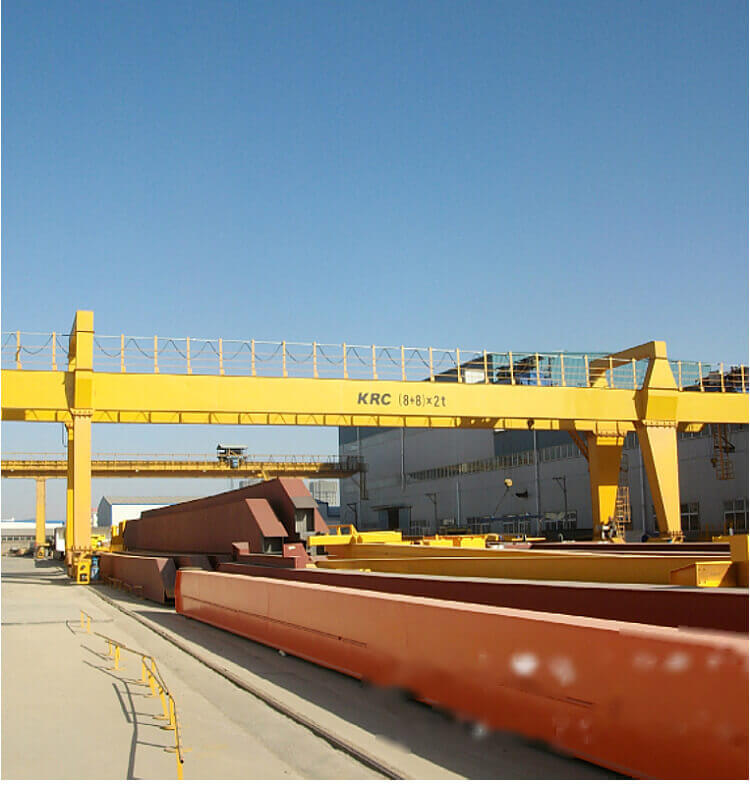 - Double beam design allows for customization for a lifting power of 5 to 100 tons.